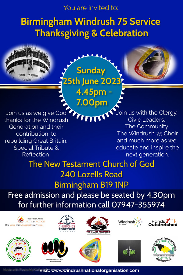 A ‘Windrush 75’ Service of Thanksgiving and Celebration will take place on Sunday 25 June to commemorate the 75th anniversary of the arrival at Tilbury Docks of the first post-war Caribbean workers on HMT Empire Windrush on 22 June 1948. The service will run from 4.45pm to 7.00pm at The New Testament Church of God, … Read more
