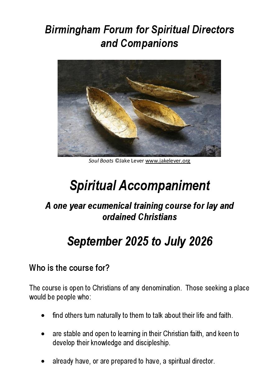 Spiritual Accompaniment Course organised by The Birmingham Forum for Spiritual Directors and Companions