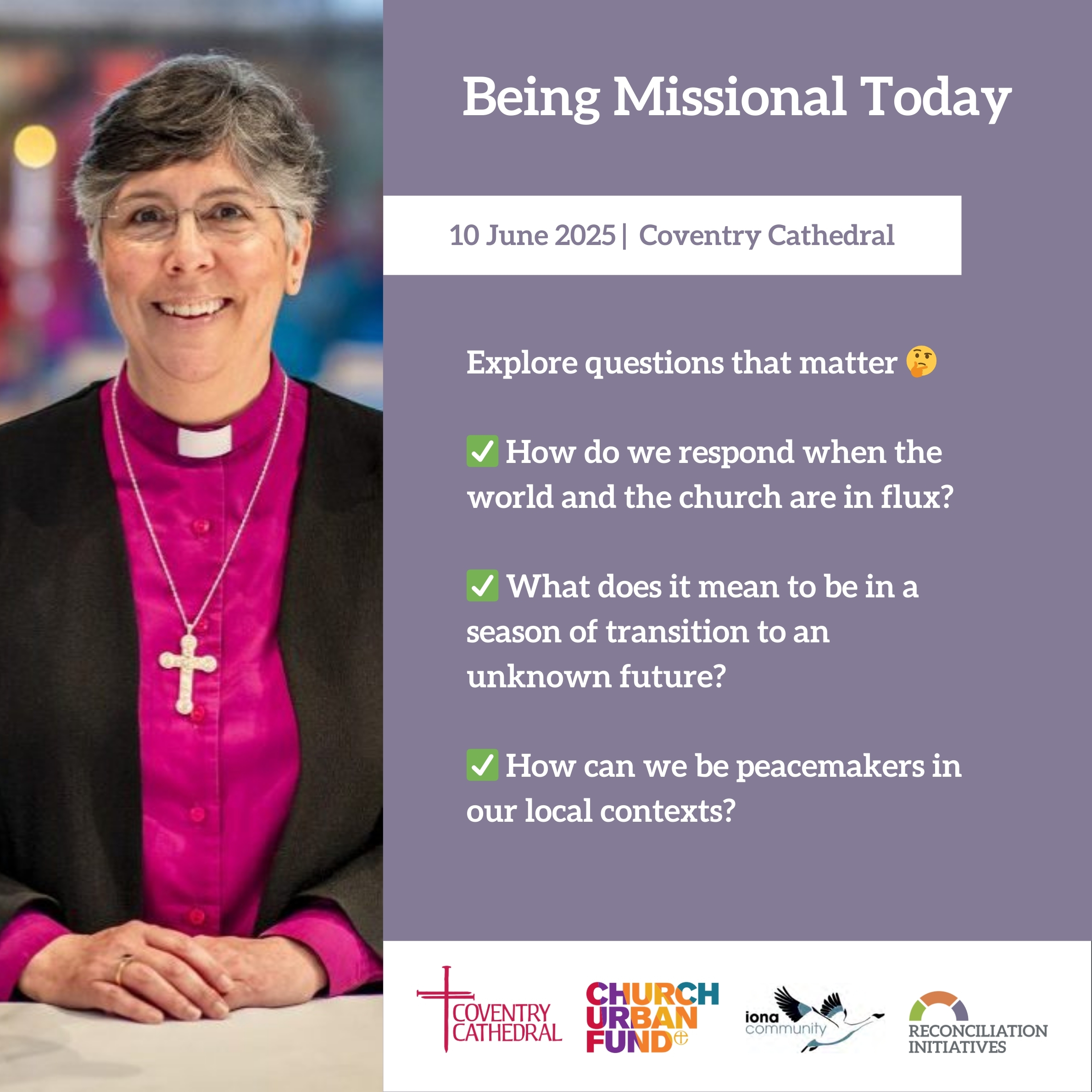 Inspiring fresh thinking in today’s church Are you passionate about local church mission? Do you want to connect with others who are reimagining what it means to be ‘missional’ in today’s complex society? Join the ‘Being Missional Today’ ecumenical conference, sponsored by Coventry Cathedral, the Church Urban Fund, the Iona Community and Reconciliation Initiatives. Why … Read more