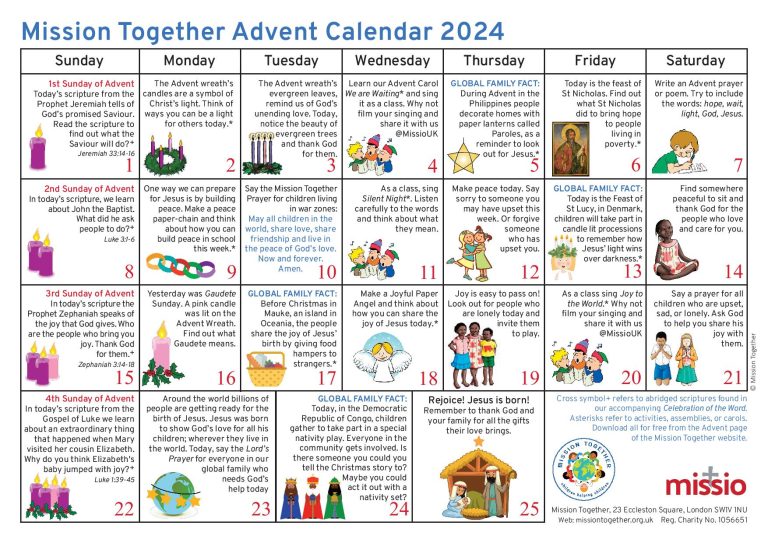 The season of Advent begins four Sundays before Christmas and is a time of prayerful preparation. During Advent we recall the Israelites’ long wait for the Messiah’s birth and remember that Jesus was born into the world and will come again. Each year Mission Together produce engaging resources to help children keep Jesus at the heart of this exciting season.