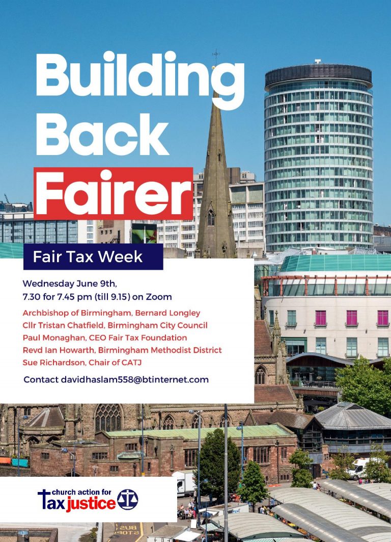 As part of Fair Tax Week, an online Birmingham-focused event will take place on the evening of Wednesday 9 June. Speakers at the ‘Building back fairer’ gathering will be: