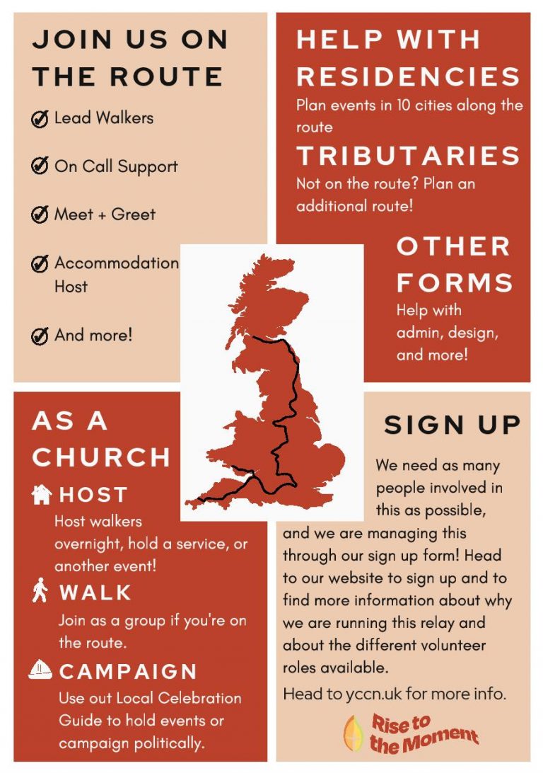 YCCN is asking for help with organisation, planning, accommodation, walking, hosting and campaigning. All information about how to get involved, including a detailed map of the relay route, can be found HERE.