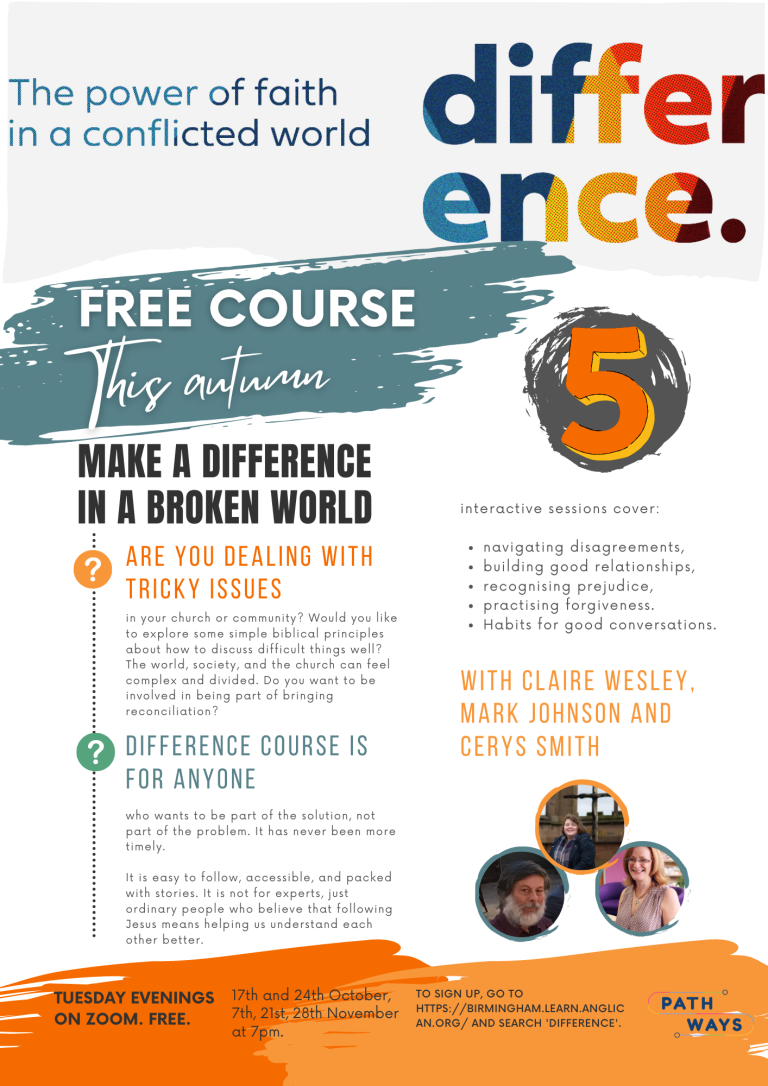 ‘The difference course is for anyone who wants to be a part of the solution, not part of the problem. It has never been more timely. It is easy to follow, accessible and packed with stories. It is not for experts, just ordinary people who believe that following Jesus means helping us understand each other better.’
