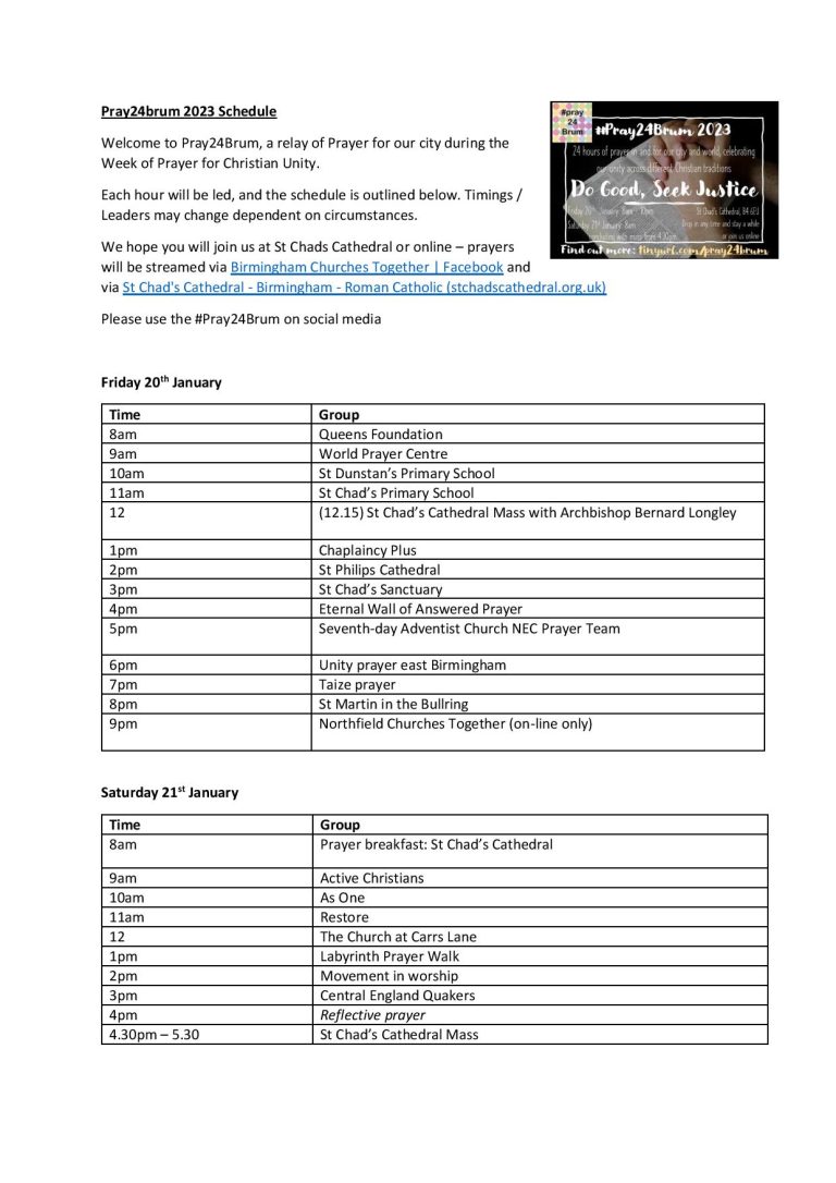 Pray24Brum, which takes place during the Week of Prayer for Christian Unity each year, falls on Friday 20th and Saturday 21st January 2023. The venue will be hosted by St Chad’s Cathedral.’