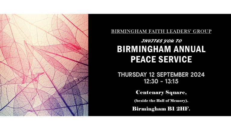 Birmingham Annual Peace Service + Add to Google Calendar + iCal / Outlook export Tags: birmingham, Birmingham Churches Together, Birmingham Faith Leaders Group, Birmingham Peace Service, Christian Unity, Church Unity, churches together Date Sep 12 2024 Expired! Time 12:30 pm - 1:15 pm Category Social Justice Share this event
