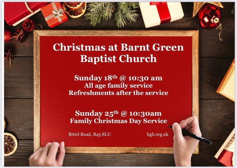 Christmas at Barnt Green Baptist Church + Add to Google Calendar + iCal / Outlook export Tags: Baptist Church, Barnt Green, Birmingham Churches Together, Christmas, ThisisChurch Date Dec 18 2022 Expired! Time 10:30 am Share this event
