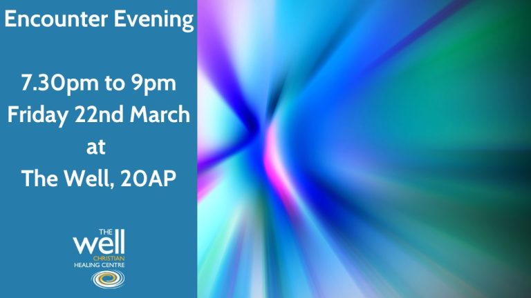 Encounter Evening (The Well Christian Healing Centre) + Add to Google Calendar + iCal / Outlook export Tags: EncounterEvening, The Well, The Well Christian Healing Centre Date Mar 22 2024 Expired! Time 7:30 pm - 9:00 pm Category Prayer Share this event