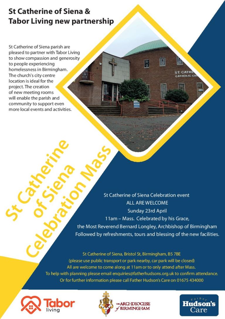 St Catherine of Siena and Tabor Living New Partnership + Add to Google Calendar + iCal / Outlook export Tags: #BirminghamChurchesTogether, Archdiocese of Birmingham, birmingham, churches together, Father Hudsons Care, St Catherine of Siena, Tabor House, Tabor Living Date Apr 23 2023 Expired! Time 11:00 am Category Social Justice Share this event
