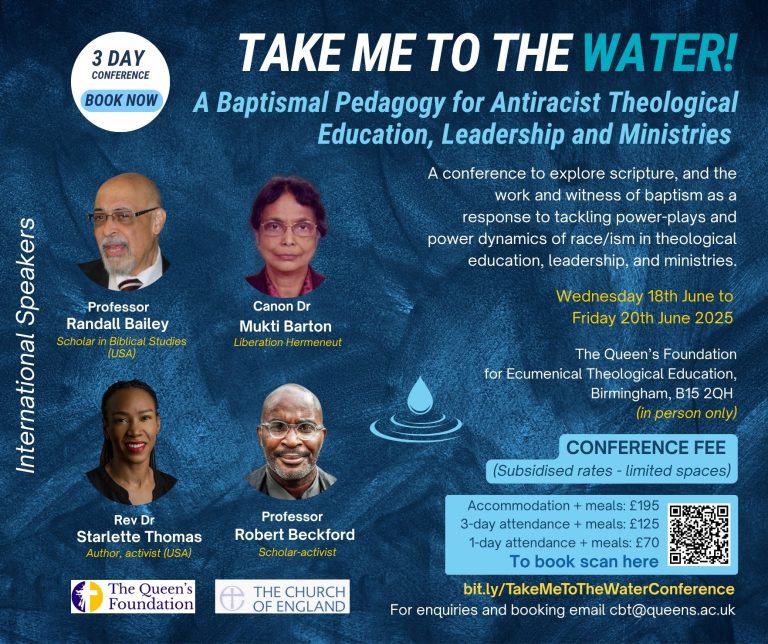 A 3-day conference at Queen’s Foundation for all interested in antiracist practices for theological education, ecclesial leadership, and ministry. This international event includes dynamic speakers such as: