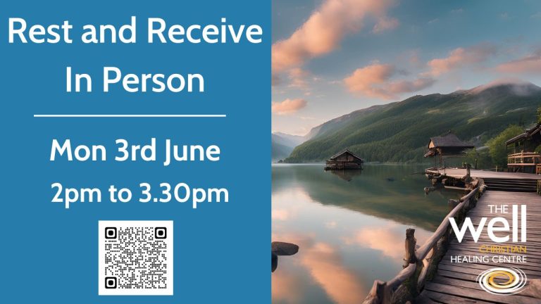 Mon 3rd June: Rest and Receive in Person (2pm – 3.30pm) Rest and Receive – The Well Christian Healing Centre (wellhealing.org)