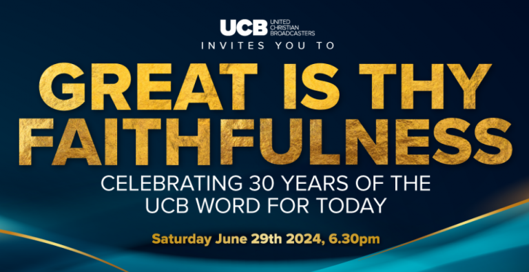 United Christian Broadcasters will celebrate 30 years of its popular ‘Word for Today’ daily Bible notes with a GREAT IS THY FAITHFULNESS gathering at the Bethel Convention Centre, West Bromwich B70 7JW at 6.30pm on Saturday 29 June. Hosted by UCB’s CEO David L’Herroux, worship will be led by Mark Oakes and Helen Yousaf. The guest speaker will be Debby Gass. Tickets cost £10 per person, or £7 per person for groups of five or more booking together. Find full details of the ‘Great is thy Faithfulness’ celebration HERE.