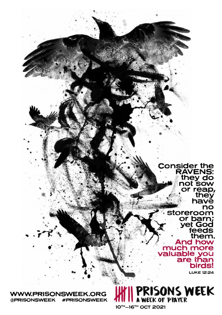 The Bible verse being used as a focus for prayer in 2021 is ‘Consider the ravens: they do not sow or reap, they have no storeroom or barn; yet God feeds them. And how much more valuable you are than birds!’ (Luke 12:24). The special prayer for Prisons Week is, ‘Lord, you offer freedom to all people. We pray for those in prison. Break the bonds of fear and isolation that exist. Support with your love prisoners and their families and friends, prison staff and all who care. Heal those who have been wounded by the actions of others, especially the victims of crime. Help us to forgive one another, to act justly, love mercy and walk humbly together with Christ in his strength and in his Spirit, now and every day. Amen.’