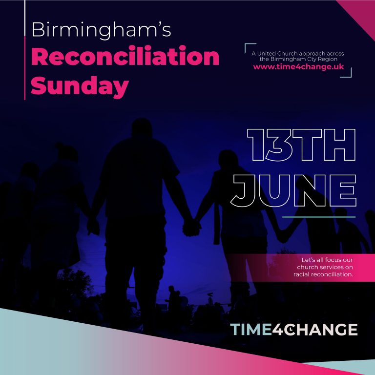 Reconciliation Sunday is an initiative of the Time4Change movement that is currently engaging Churches and organisations across Birmingham. A key element of Time4Change is the charter that sets out its focus, intentions and commitments. The Time4Change leaders want every Christian to know and apply the Charter’s 15 statements (Link HERE).