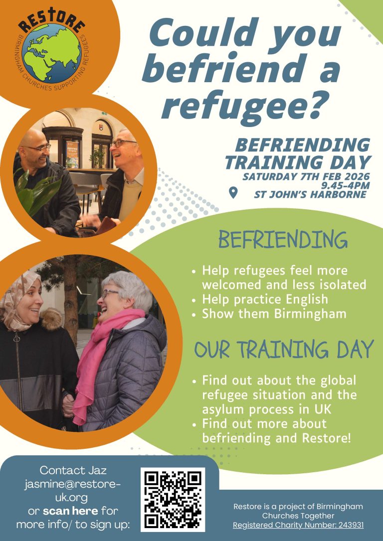 To learn more about refugees or explore what befriending involves, please join us for our next training day on Saturday 7th February 2026 from 9.45am to 4pm with a light lunch included. Please click HERE to sign up.