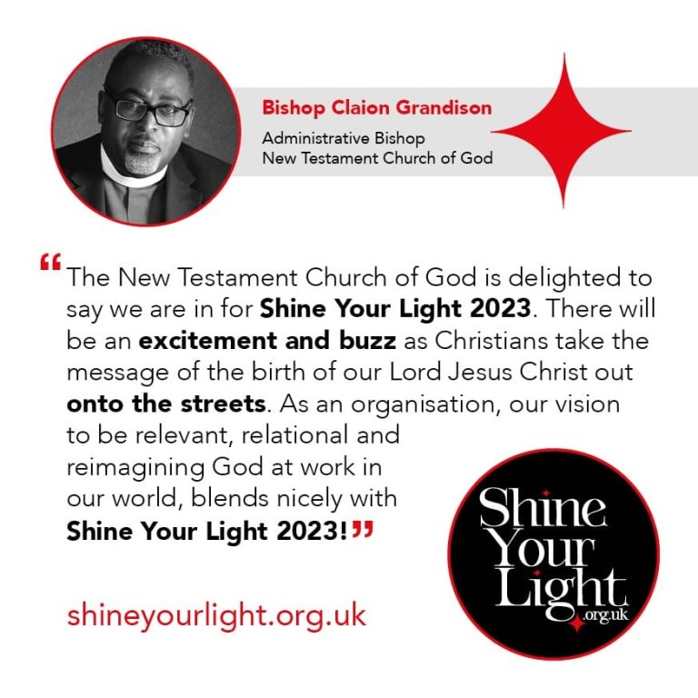 Bishop Claion Grandison of the New Testament Church of God said, ‘The New Testament Church of God is delighted to say we are in for ‘Shine Your Light 2023.’ There will be an excitement and buzz as Christians take the message of the birth of our Lord Jesus Christ out onto the streets.